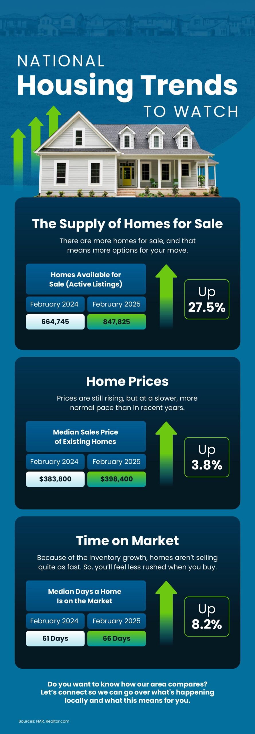 • There are more homes for sale, price growth has moderated, and homes are taking a little longer to sell.