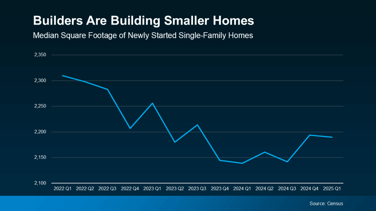 Builders know that buyers are struggling with affordability today. So, instead of building big houses that may not sell, they’re building smaller ones that will. According to the Census, the average size of a newly built single-family home has dropped considerably over the past few years (see graph below):