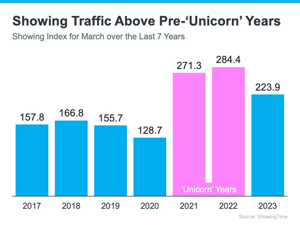 If you look at the headlines, you’d think there aren’t any buyers out there. We still sell over 10,000 houses a day in the United States. Of course, buyer demand is down from the two ‘unicorn’ years. But, according to ShowingTime, if we compare it to normal years (2017-2019), we can see that buyer activity is still strong (see graph below):
